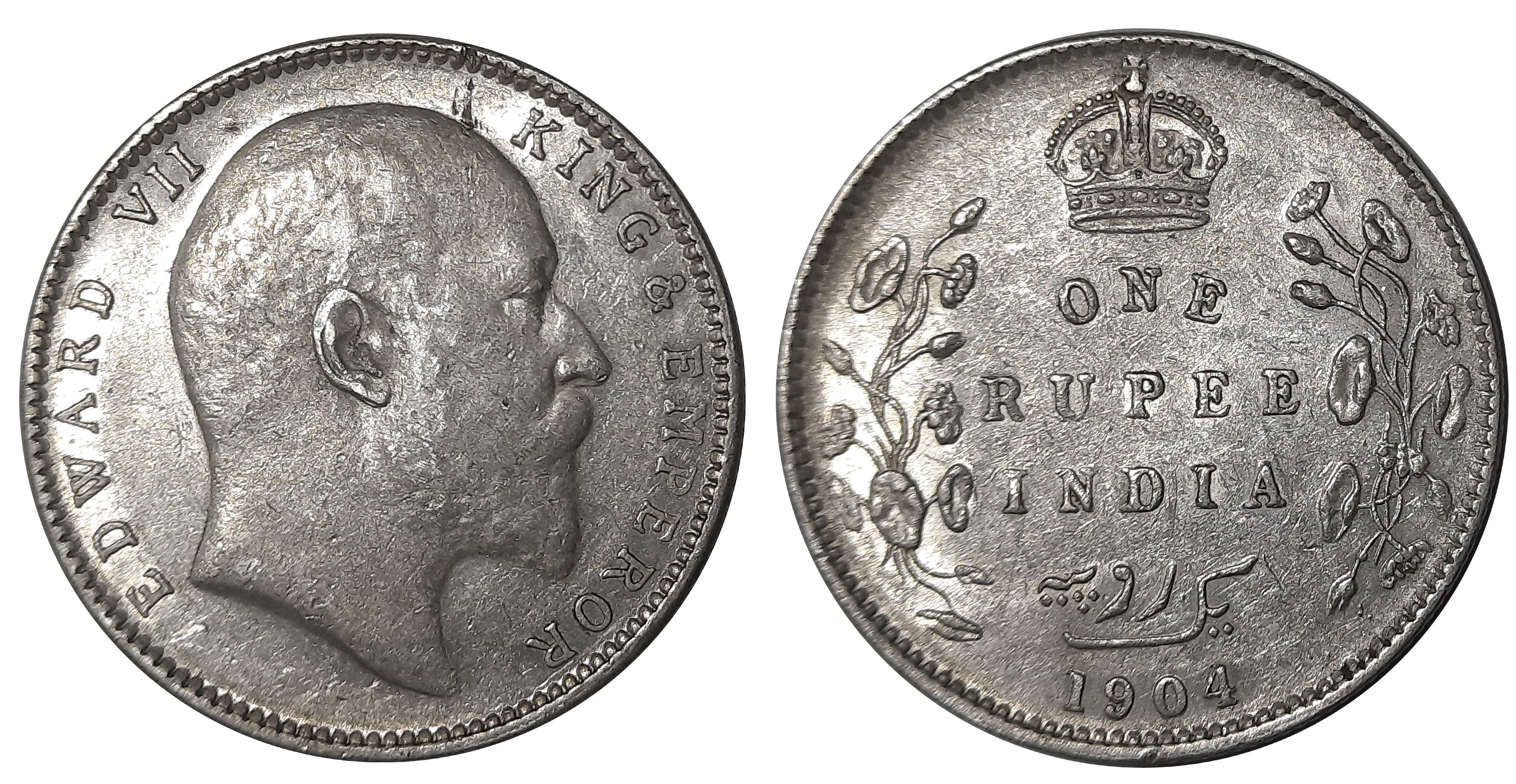 Victoria Empress, Silver Rupee, 1890, Obv: Crowned Bust of Queen Victoria facing left, Legend “VICTORIA QUEEN”, Rev: Legend “ONE RUPEE INDIA” date with in wreath. Very fine.