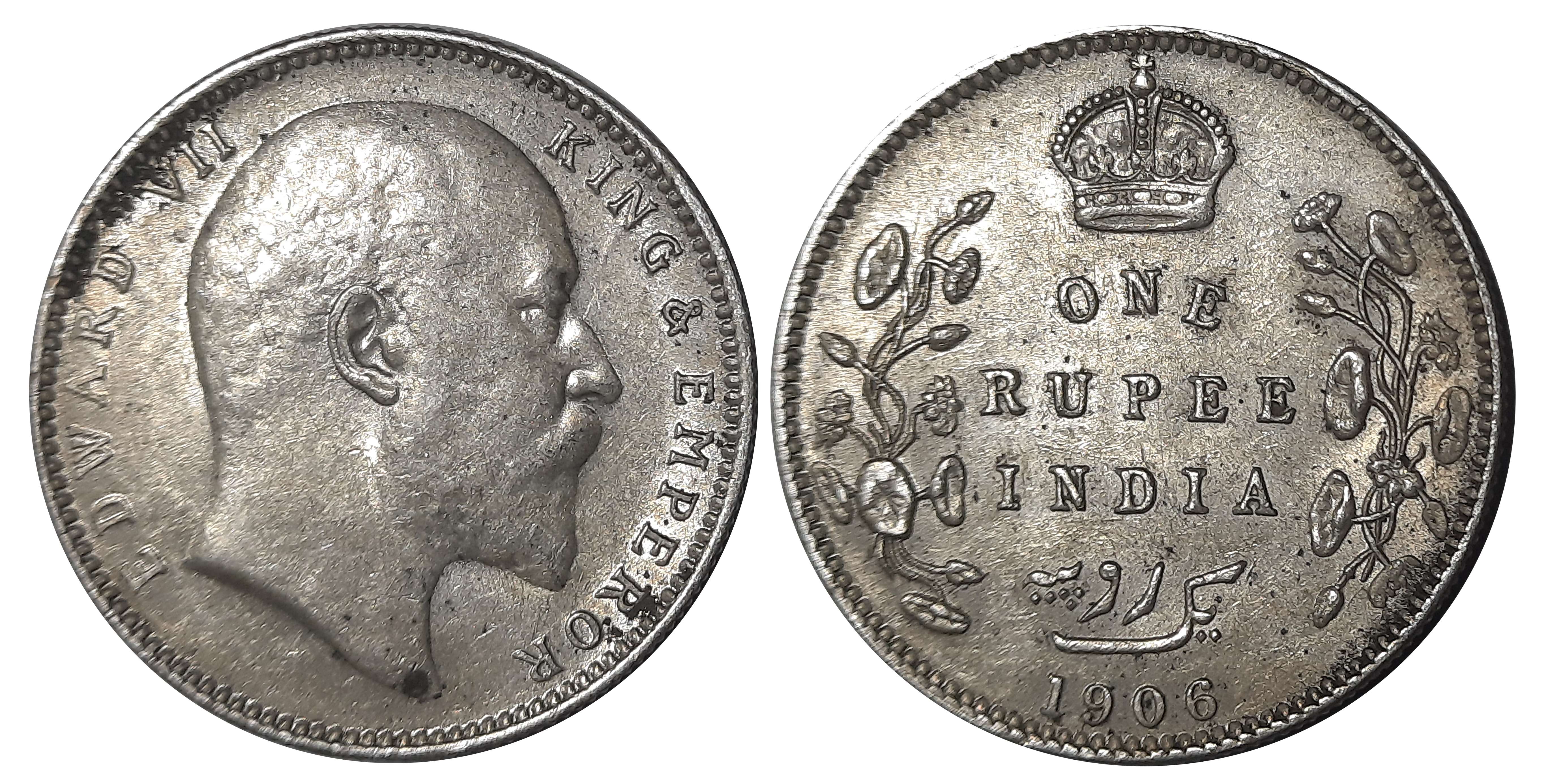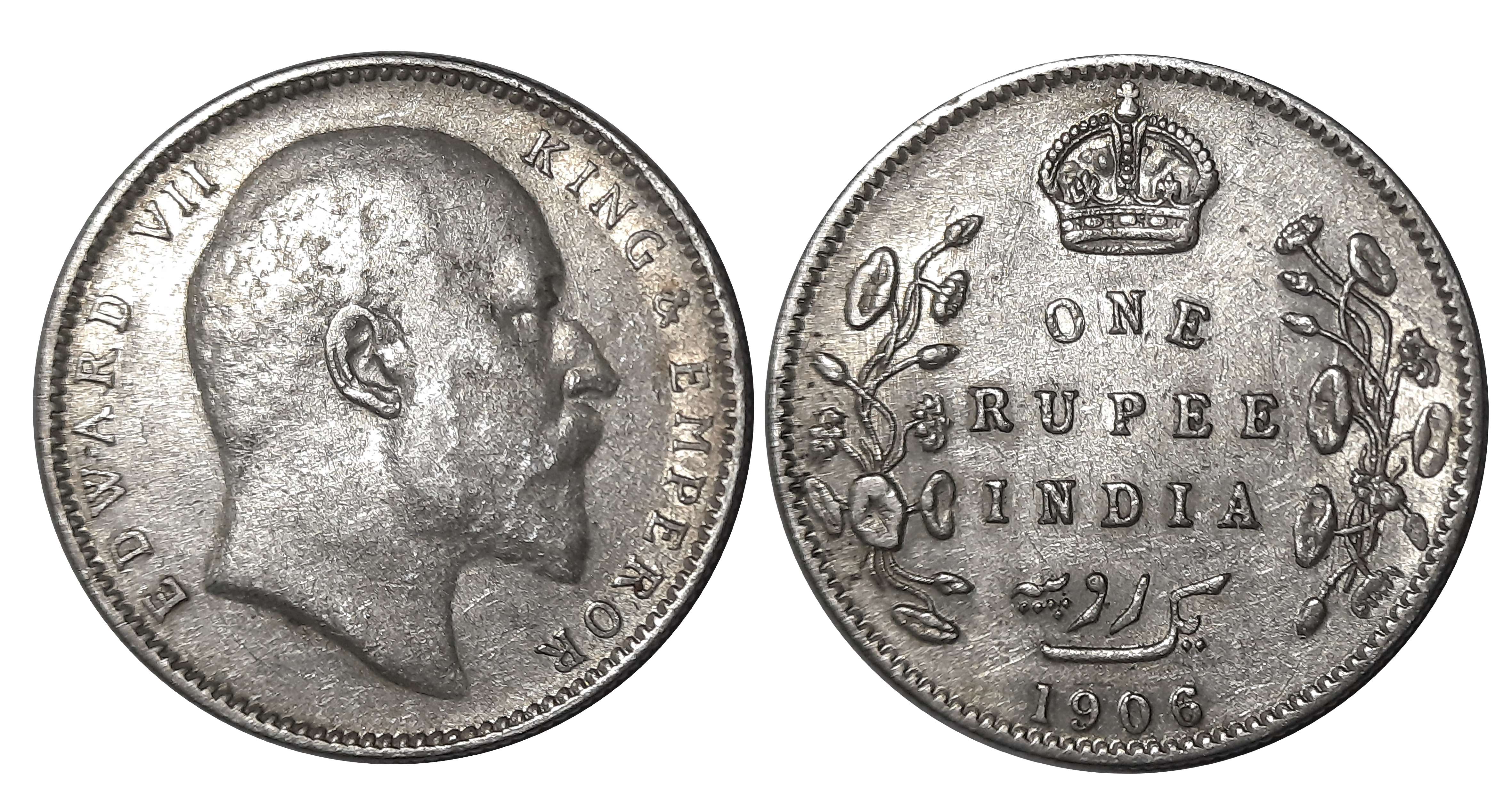 Edward VII, Silver Rupee, 1904, Obv: Bust of King Emperor facing right, Legend “EDWARD VII, KING EMPEROR” above, Rev: Legend “ONE RUPEE INDIA” date below in wreath crown above, Persian Legend Yek Rupaya. Very fine. Certified, Authenticated and packed in Temper Proof Coin Card.
