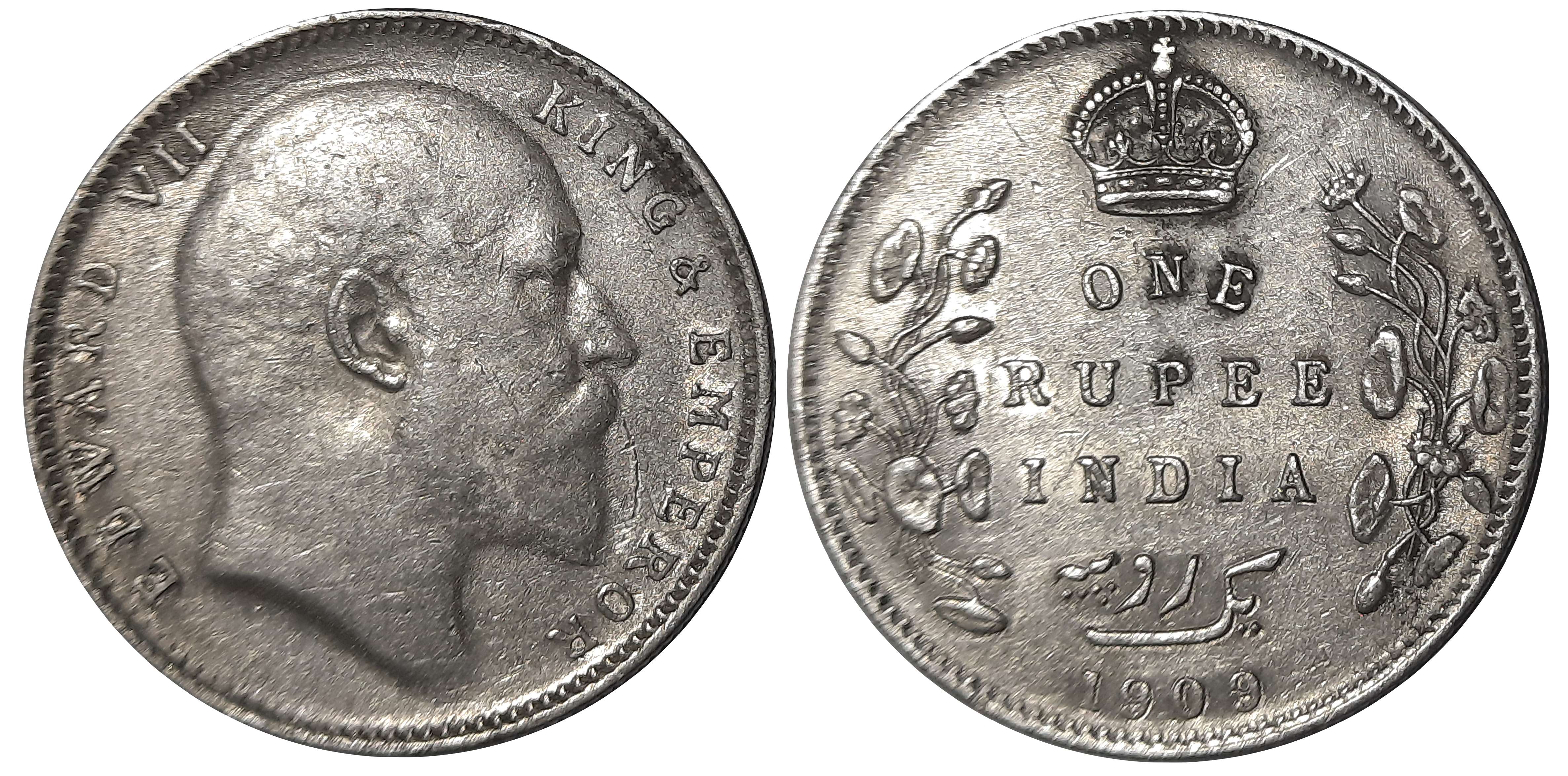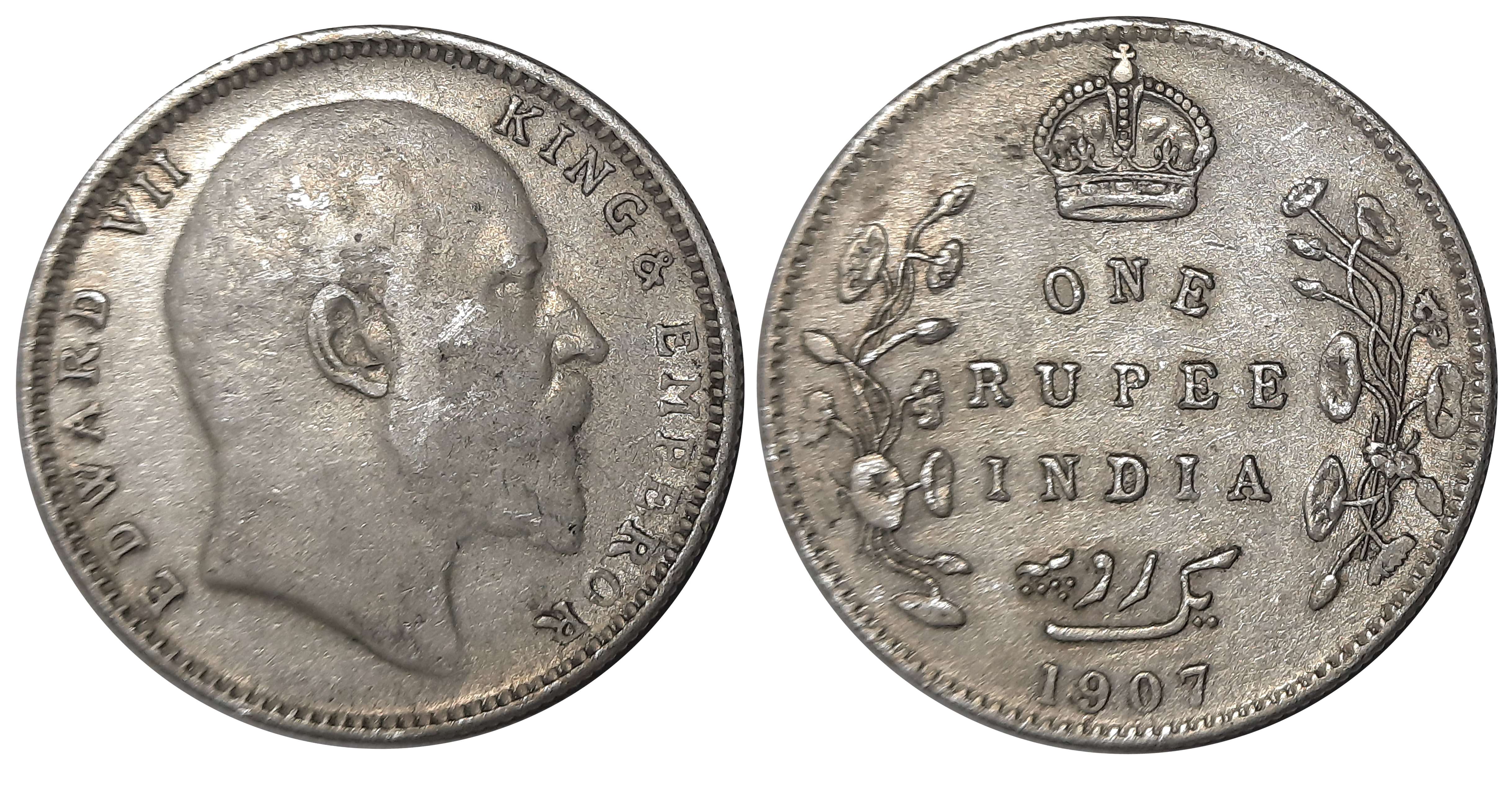 Edward VII, Silver Rupee, 1906, Obv: Bust of King Emperor facing right, Legend “EDWARD VII, KING EMPEROR” above, Rev: Legend “ONE RUPEE INDIA” date below in wreath crown above, Persian Legend Yek Rupaya. Very fine. Certified, Authenticated and packed in Temper Proof Coin Card.