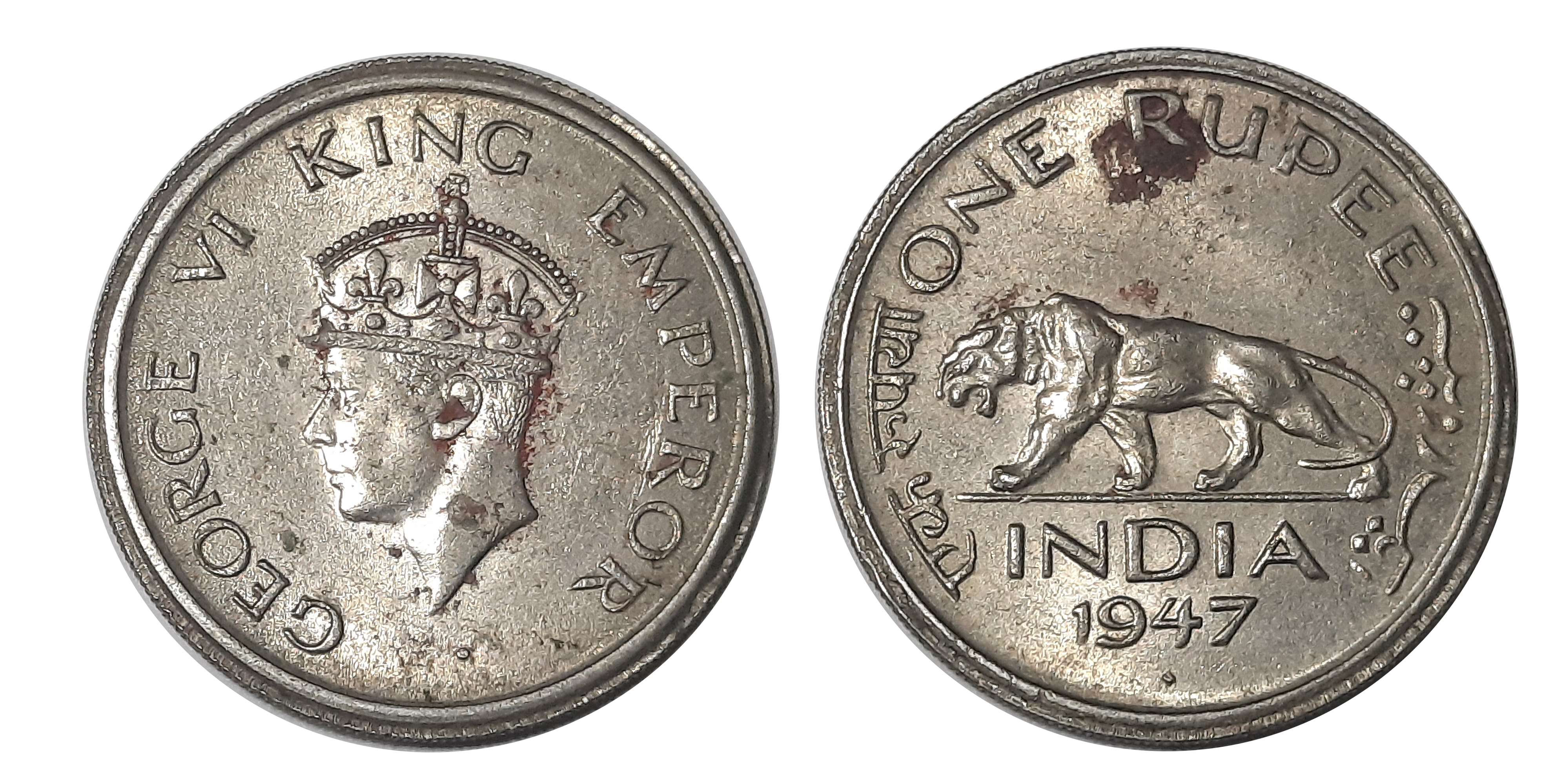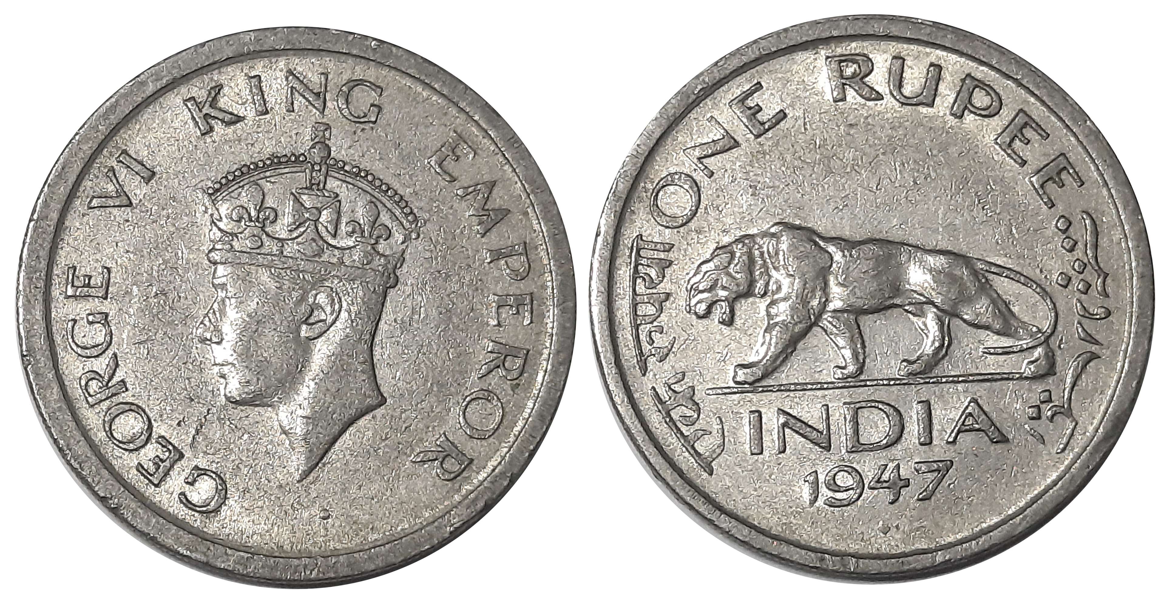 George VI, Complete set of Nickle 3 coins 1947, Rupee, 1/2 Rupee & 1/4 Rupee. Very fine to extremely fine. 3 coins.