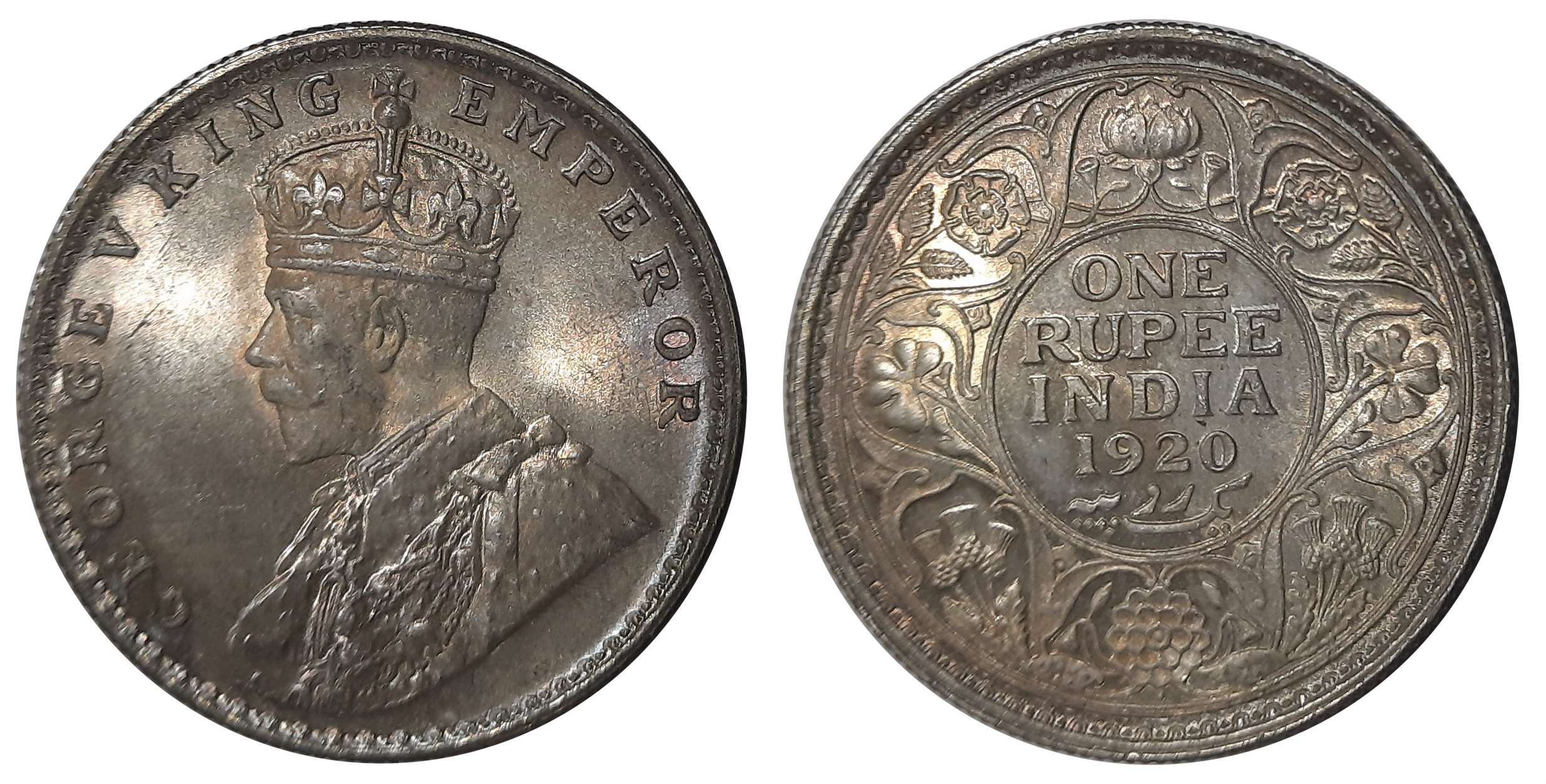 George V, Silver Rupee, 1920, Obv: King George V facing to left, Rev: Denomination & Date within circle, wreath surrounds, Very fine. Certified, Authenticated and packed in Temper Proof Coin Card.