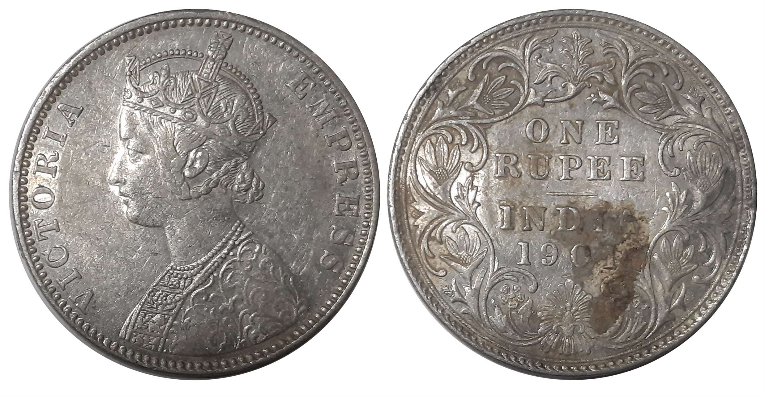 Victoria Queen, Silver Rupee, 1862, Obv: Crowned Bust of Queen Victoria facing left, Legend “VICTORIA QUEEN”, Rev: Legend “ONE RUPEE INDIA” date with in wreath. Very fine+