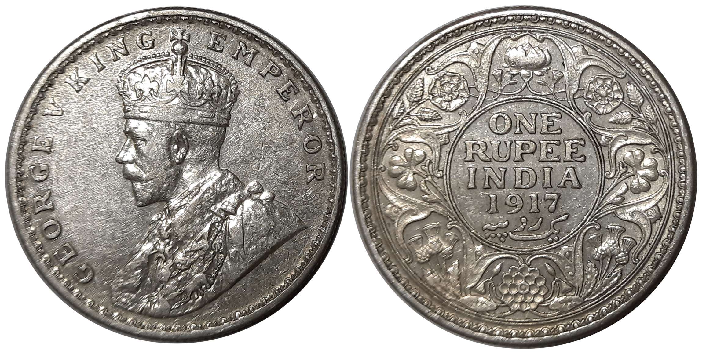 George V, Silver Rupee, 1917, Obv: King George V facing to left, Rev: Denomination & Date within circle, wreath surrounds, Very fine. Certified, Authenticated and packed in Temper Proof Coin Card.