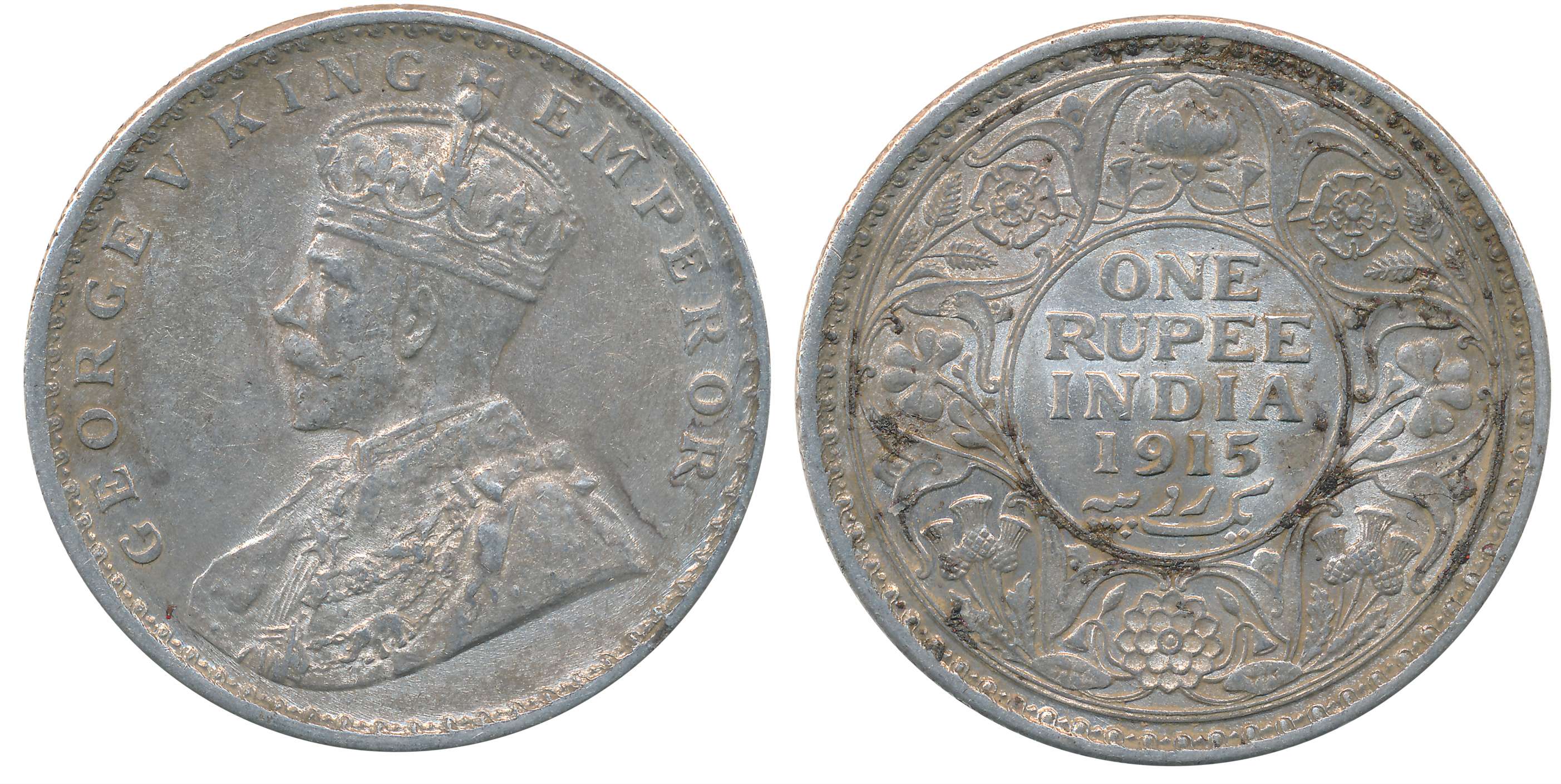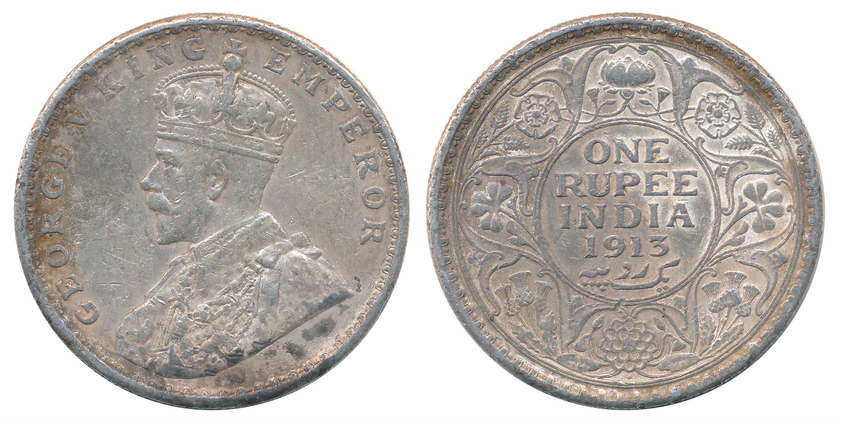 George V, Silver Rupee, 1919, Obv: King George V facing to left, Rev: Denomination & Date within circle, wreath surrounds, Very fine. Certified, Authenticated and packed in Temper Proof Coin Card.