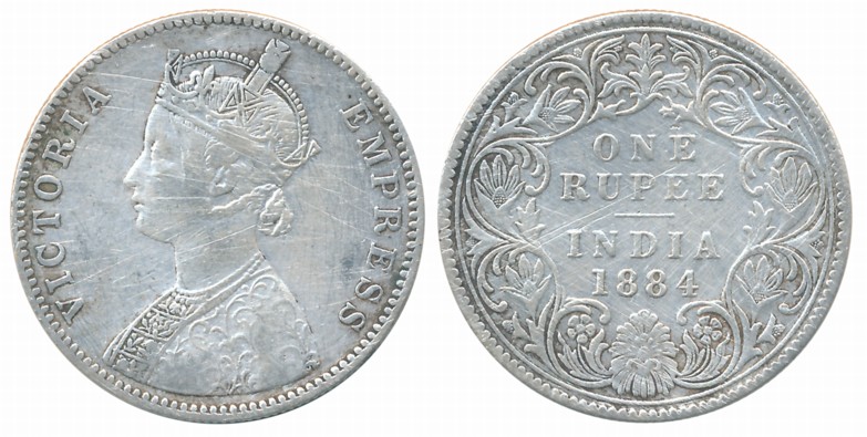 Victoria Queen, Silver Rupees, 1862, Obv: Crowned Bust of Victoria facing left, Rev: Legend “ONE RUPEE INDIA” date with in wreath. Very fine. Certified, Authenticated and packed in Temper Proof Coin Card. You are saving Rs. 100/- on this purchase.