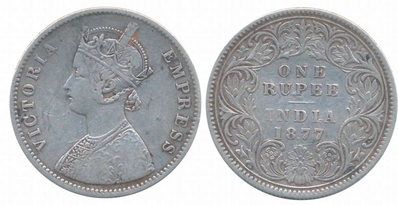 Victoria Empress, Silver Rupee, 1884, Obv: Crowned Bust of Victoria facing left, Legend “VICTORIA EMPRESS”, Rev: Legend “ONE RUPEE INDIA” date with in wreath. Very fine. Certified, Authenticated and packed in Temper Proof Coin Card. You are saving Rs. 100/- on this purchase.