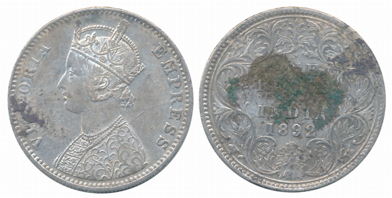 Victoria Empress, Silver Rupee, 1878, Obv: Crowned Bust of Victoria facing left, Legend “VICTORIA EMPRESS”, Rev: Legend “ONE RUPEE INDIA” date with in wreath. Very fine. Certified, Authenticated and packed in Temper Proof Coin Card. You are saving Rs. 100/- on this purchase.