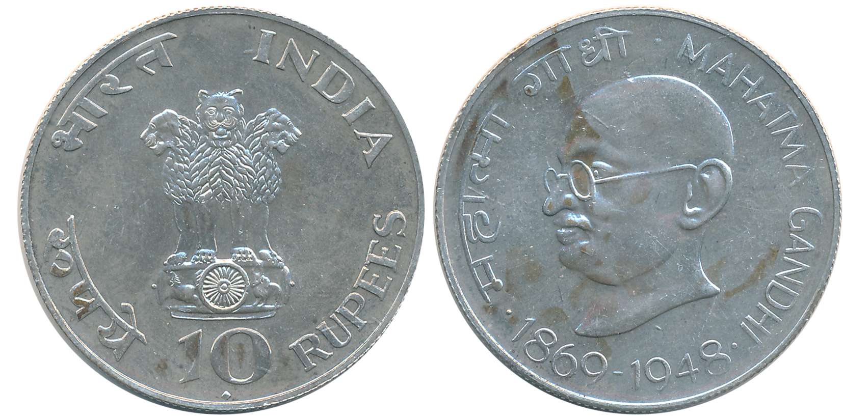 1972, 10 Rupees, Silver, “25th Anniversary of Independence”, Calcutta mint, Ashoka Lion Pedestal, Rev: Figures holding flag, Parliament building in background (KM# 187.2). Uncirculated. You are saving Rs. 100/- on this purchase.
