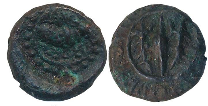 Kadambas of Banvasi, Sri Doshrasi, Potin, 0.24g, uniface, Chakra like symbol, Brahmi legend in each compartment on obverse. Very fine+, scarce.
