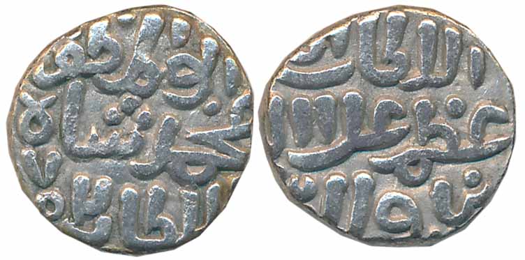 Muhammad bin Tughluq, Billion 10 Gani, 3.51g, AH 726, Obv: al sultan al adil, Rev: Muhammad bin tughlue shah (G&G# D373). Very fine.