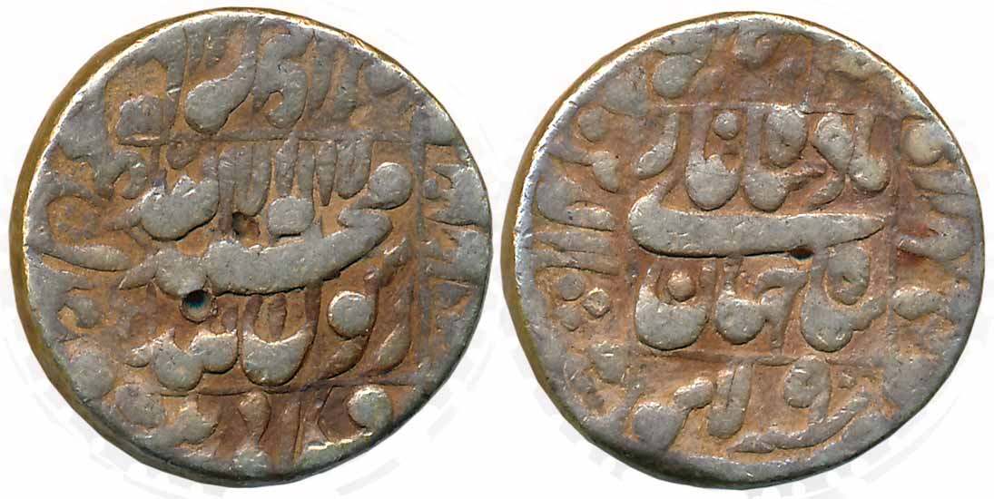 Muhammad Shah, Silver Rupee, 11.39g, Azimabad Mint (Mint name on top partially visible), AH 1158/ RY 27 (KM# 436.12). Very fine.