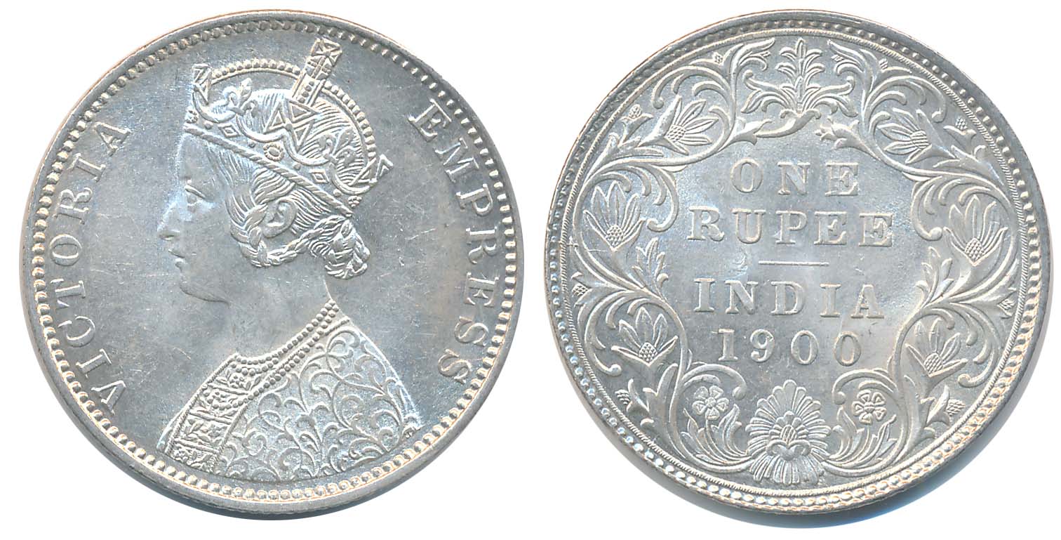 Victoria Empress, Silver Rupees, 1889, Obv: Crowned Bust of Victoria Empress facing left, Legend “VICTORIA EMPRESS”, Rev: Legend “ONE RUPEE INDIA” date with in wreath. Very fine. Certified, Authenticated and packed in Temper Proof Coin Card. You are saving Rs. 100/- on this purchase.