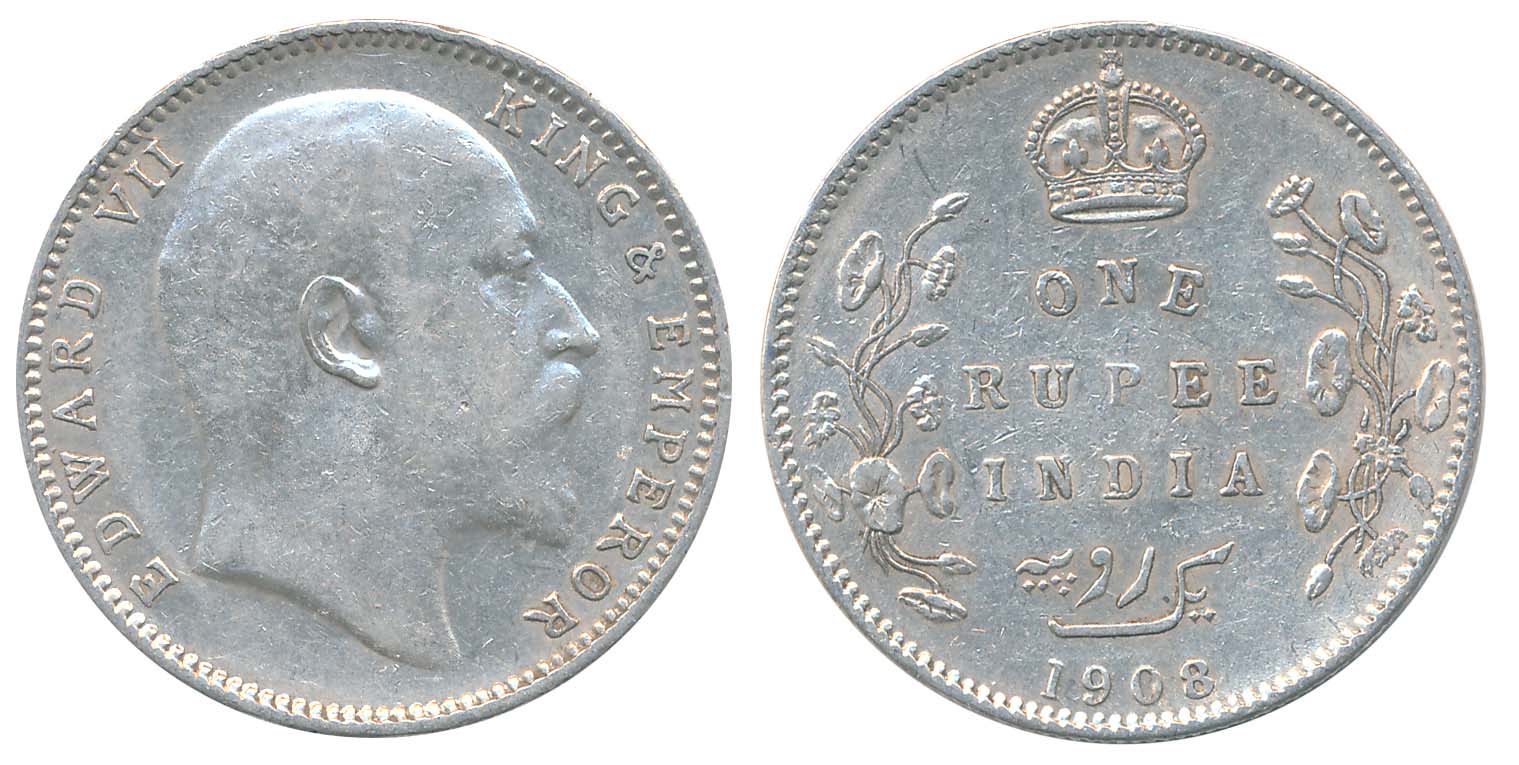 Edward VII, Silver Rupee, 1905, Obv: Bust of King Emperor facing right, Legend “EDWARD II, KING EMPEROR” above, Rev: Legend “ONE RUPEE INDIA” date below in wreath crown above, Persian Legend Yek Rupaya. Very fine. Certified, Authenticated and packed in Te