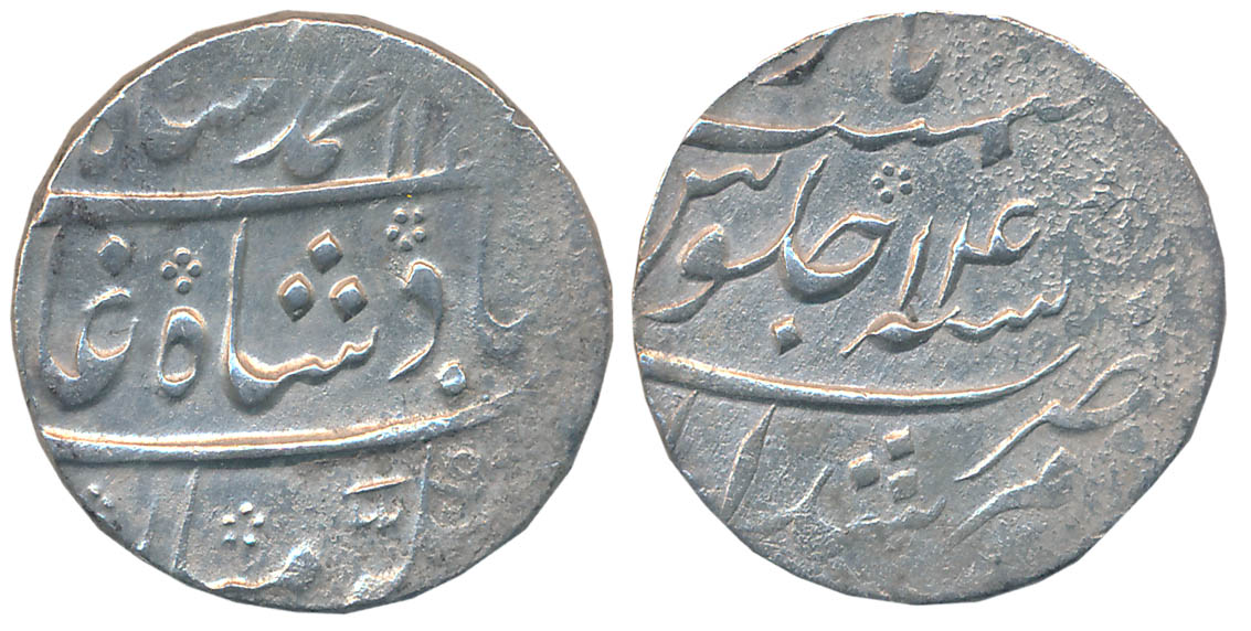 Ahmad Shah, Silver Rupee, 10.32g, Murshidabad Mint, RY 2 (KM# 446.15). About very fine.