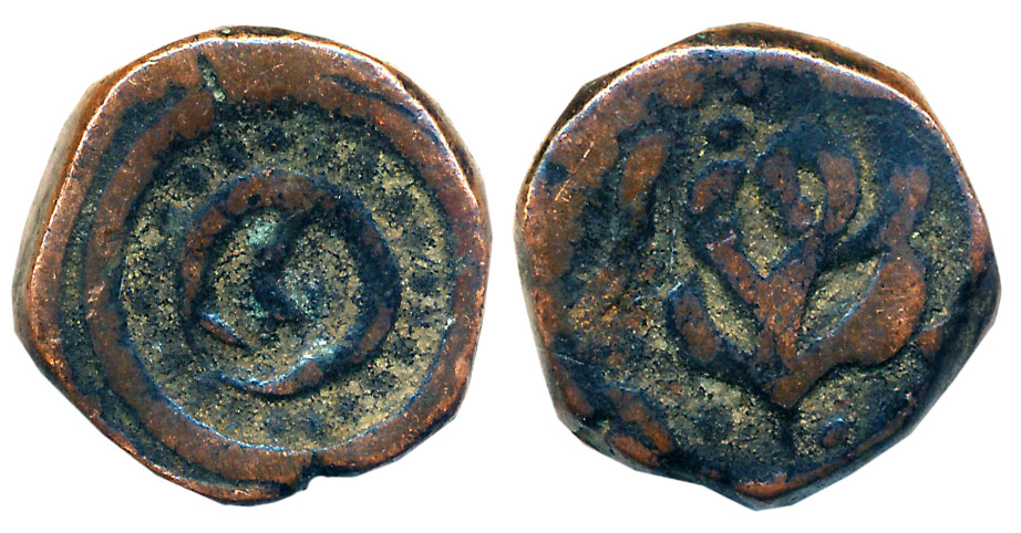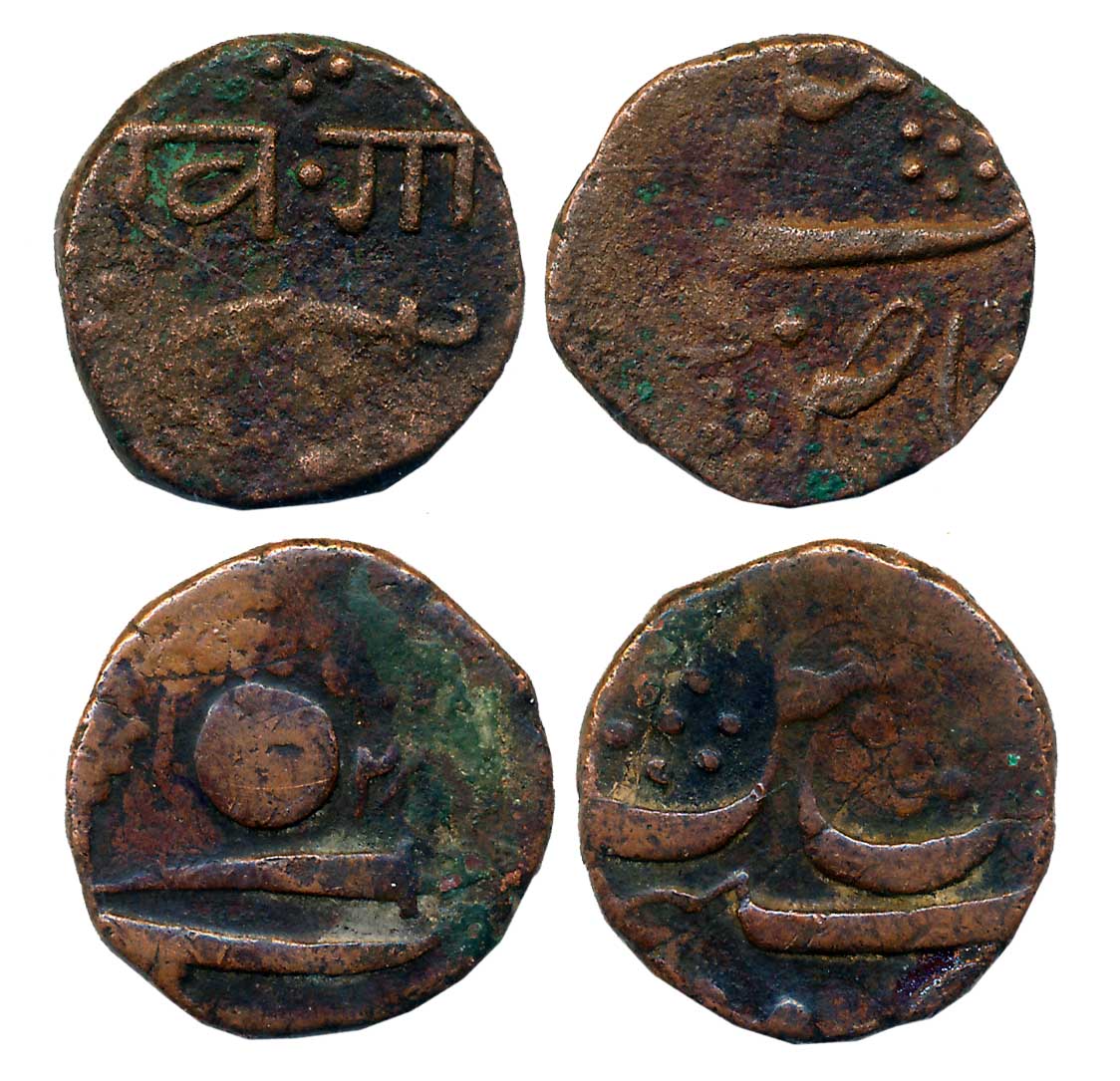 Indore, Copper, 10.02g, in the name of Shah Alam II, Obv: Shivpindi, Rev: Trishul. Very fine+.