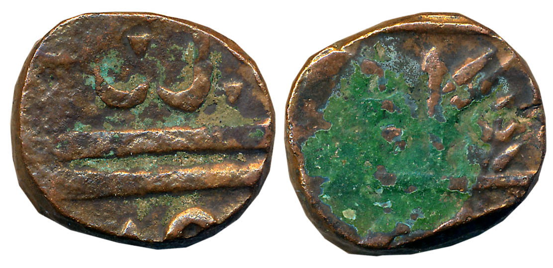 Indore, Copper, 11.73g, Maheshwar Mint, in the name of Shah Alam II, AH XX32, Shivpindi as mint mark on reverse. Very fine+.