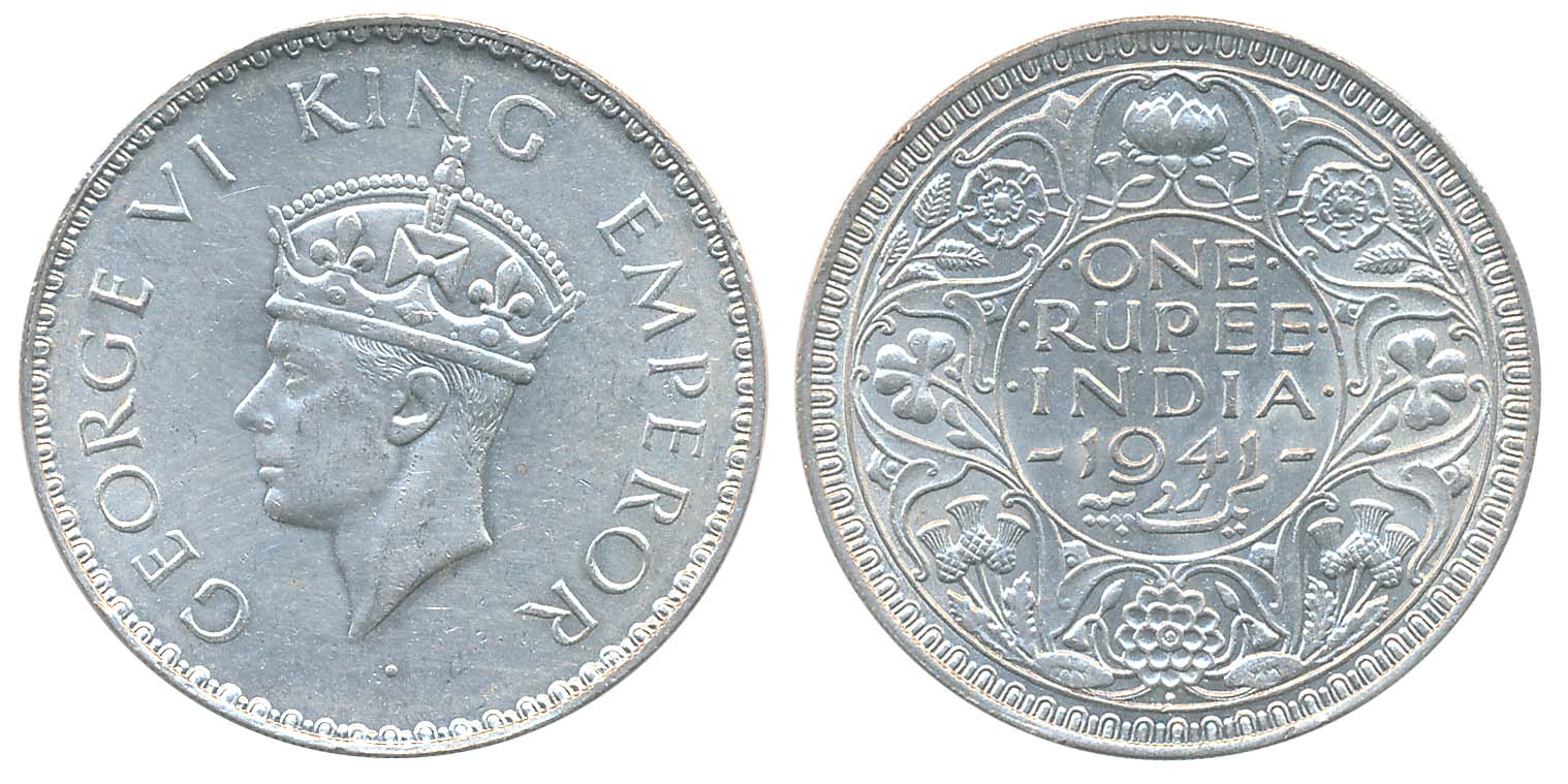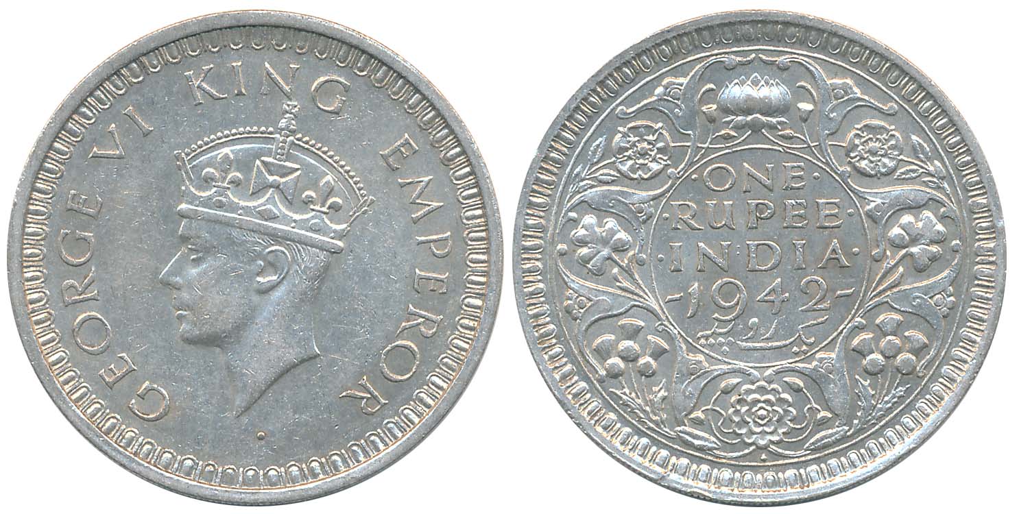 George VI, Silver Rupee, 1945, Obv: Crowned head to left, Rev: Denomination & Date within circle, wreath surrounds, Very Fine. Certified, Authenticated and packed in Temper Proof Coin Card. You are saving Rs.50/- on this purchase.