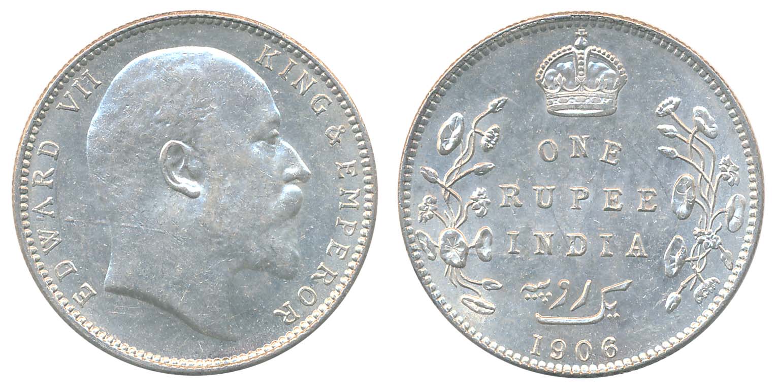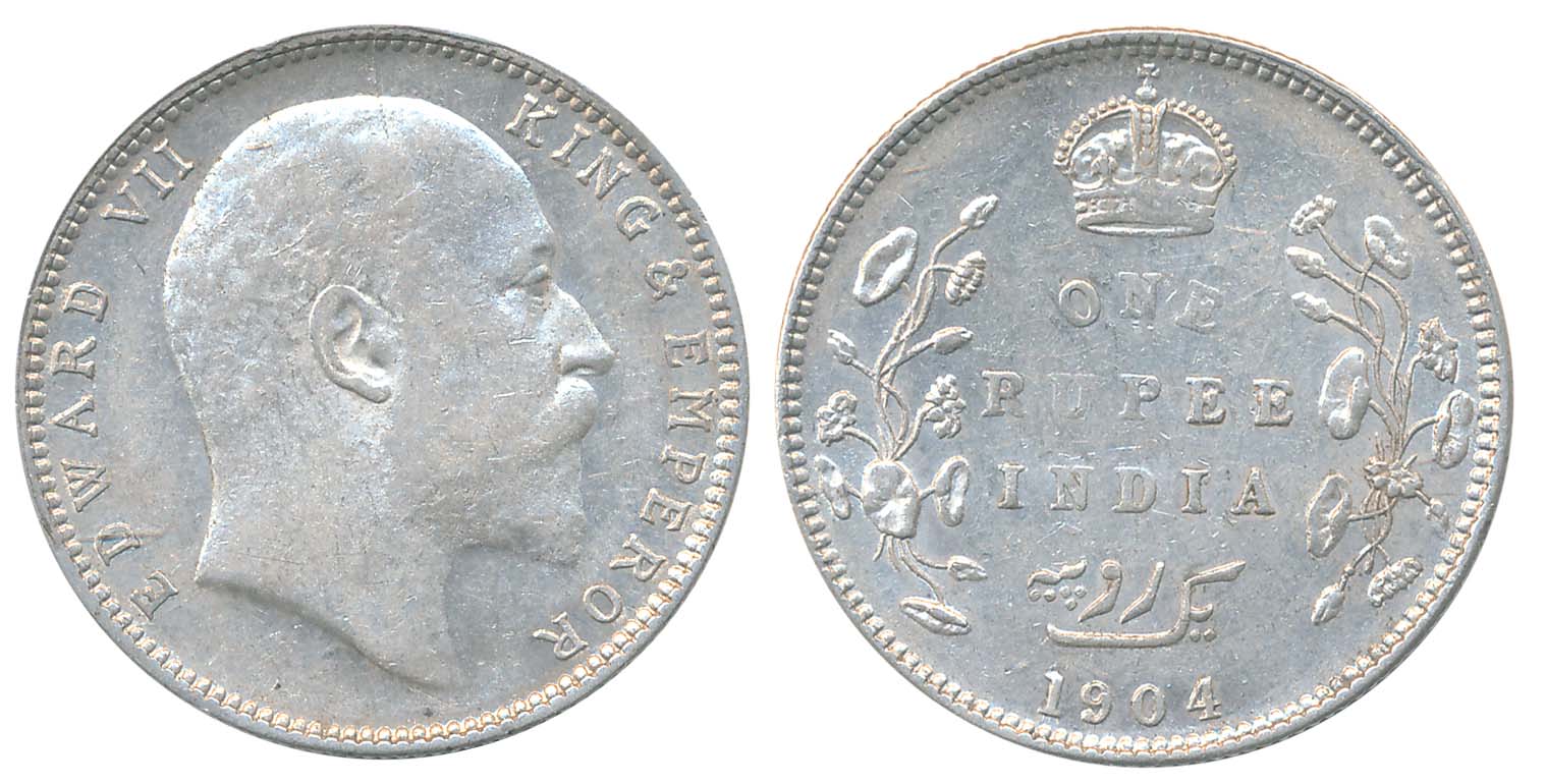 Edward VII, Silver Rupee, 1904, Obv: Bust of King Emperor facing right, Legend “EDWARD II, KING EMPEROR” above, Rev: Legend “ONE RUPEE INDIA” date below in wreath crown above, Persian Legend Yek Rupaya. Very fine. Certified, Authenticated and packed in Temper Proof Coin Card. You are saving Rs.100/- on this purchase.