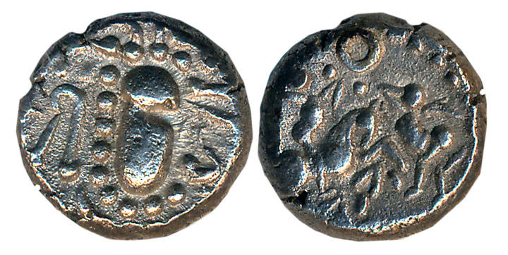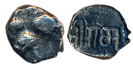 Yadavas of Devagiri, Singhanadeva, Silver Kasu, 0.89g, Obv: Lion standing to left, Rev: Compete Devnagari legend. Very fine+.
