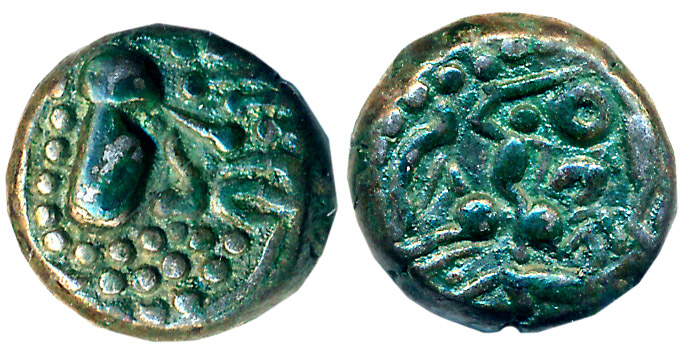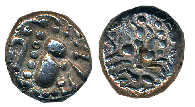 Yadavas of Devagiri, Ramchandra Deva, Silver Kasu, 0.82g, Obv: Lion standing to right, Rev: Devnagari legend (Mitch# 292). Very fine.