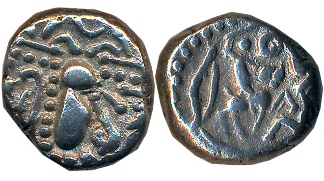 Paramaras of Malwa, Silver Dramma, 4.17g, “Gadhiyya” type, Obv: Gadhiyya type head facing right, Rev: Warrior on Horseback (J. Deyell# 167). Very fine.