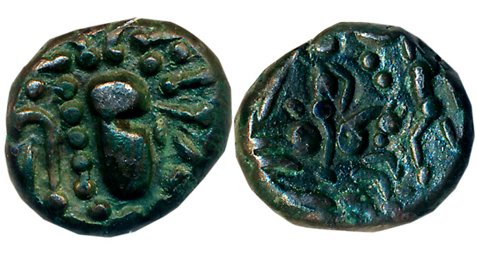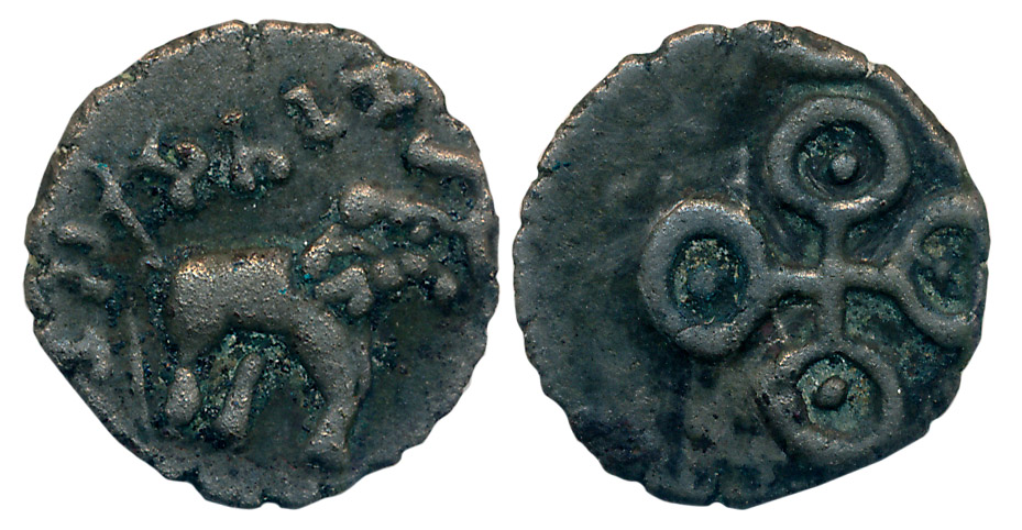 Paramaras of Malwa, Silver Dramma, 4.32g, “Gadhiyya” type, Obv: Gadhiyya type head facing right, Rev: Warrior on Horseback (J. Deyell# 167). Very fine.