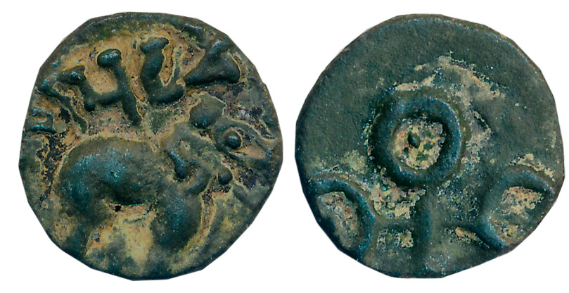 Paramaras of Malwa, Silver Dramma, 4.32g, “Gadhiyya” type, Obv: Gadhiyya type head facing right, Rev: Warrior on Horseback (J. Deyell# 167). Very fine.