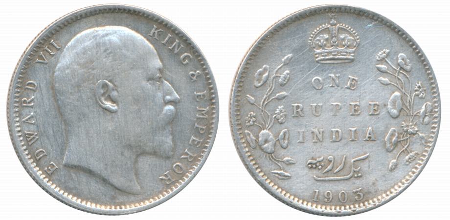 Edward VII, Silver Rupee, 1906, Obv: Bust of King Emperor facing right, Legend “EDWARD II, KING EMPEROR” above, Rev: Legend “ONE RUPEE INDIA” date below in wreath crown above, Persian Legend Yek Rupaya. Very fine. Certified, Authenticated and packed in Temper Proof Coin Card.