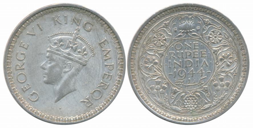 George VI, Silver Rupee, 1945, Obv: Crowned head to left, Rev: Denomination & Date within circle, wreath surrounds, Very Fine.